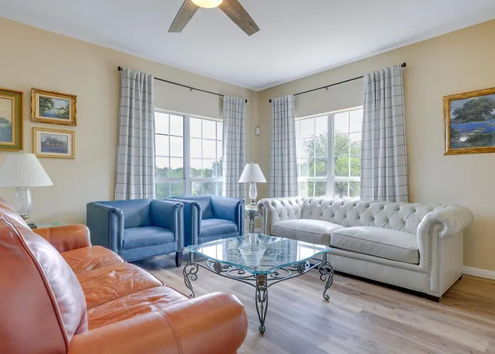 Set in the serene landscapes of the Texas Hill Country, the Fox Ridge Farmhouse - Hill Country Getaway! Provides an idyllic retreat for those seeking a blend of comfort and nature. Just 70 km from the bustling Austin-Bergstrom International Airport, this charming farmhouse is the perfect escape for families, couples, and friends. Surrounded by lush greenery and panoramic views, the setting invites relaxation and rejuvenation.